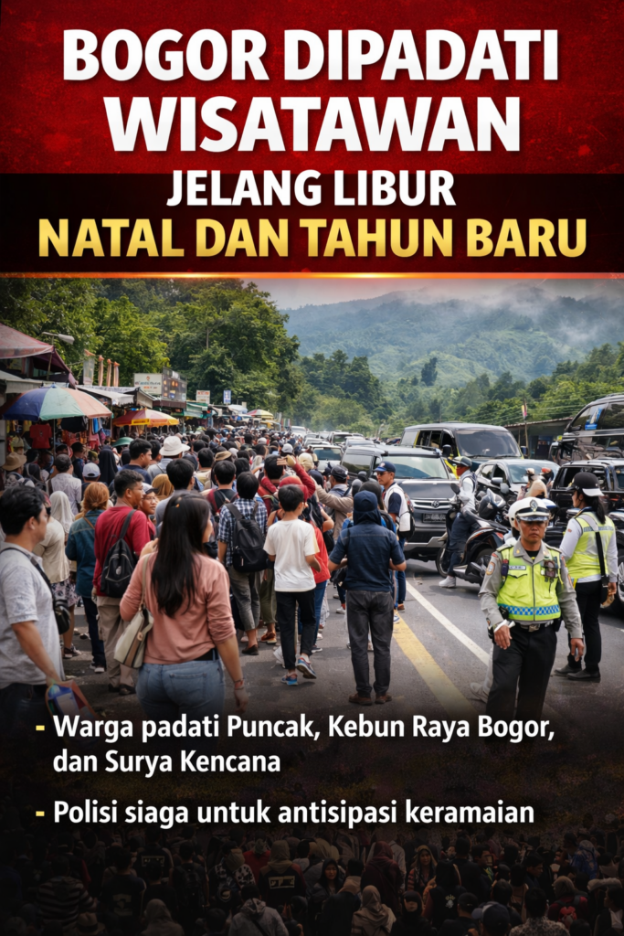 Bogor — Menjelang libur nasional Natal dan Tahun Baru, sejumlah destinasi wisata di Bogor mulai dipadati pengunjung. Kawasan Puncak, Kebun Raya Bogor, hingga pusat kuliner Surya Kencana menjadi titik favorit wisatawan dari Jabodetabek sejak akhir pekan terakhir.